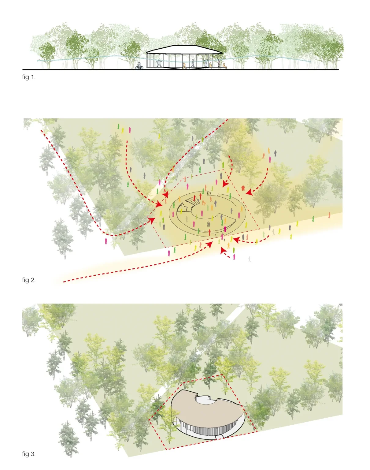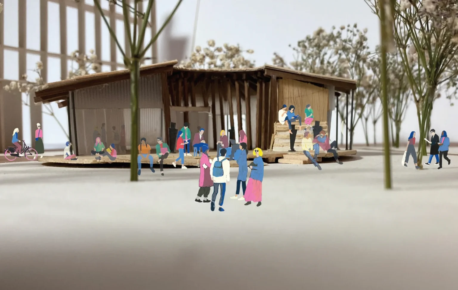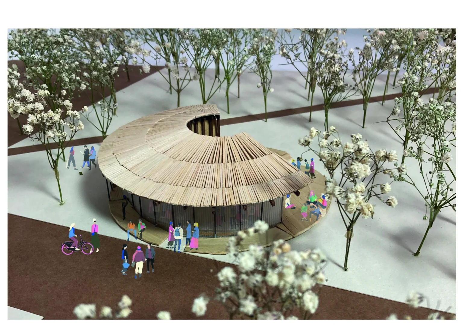 Le projet propose un pavillon temporaire au cœur du campus urbain de Paris‑Saclay, conçu comme un catalyseur pour animer les espaces publics et favoriser la vie du quartier. Ouvert, polyvalent et modulable, il accueillera des activités culturelles, éducatives et conviviales pour les étudiants, habitants et usagers du campus.